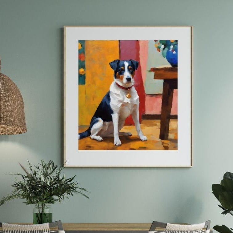 This Adorable Puppy painting features a vibrant color palette that will add a charming touch to any space. Made with expert precision, this piece will bring a playful and lively energy to your home or office.