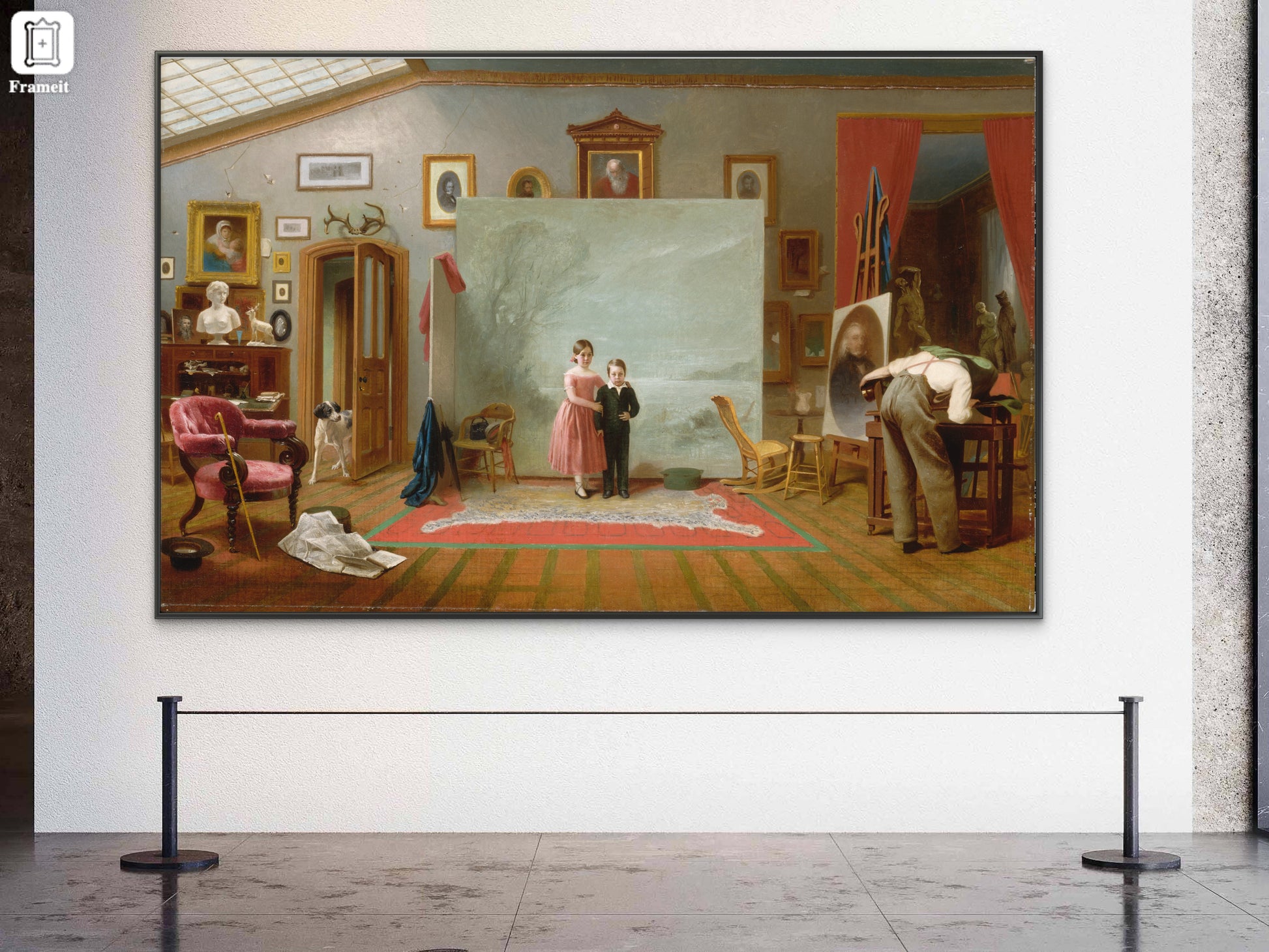 Interior with portraits is an immersive art print designed to elevate your interiors. Blending rich tones of gold and silver, this scenic painting piece adds a layer of elegance and modernity to any space. Ideal for homes, offices, or creative studios, each print is made using archival-quality materials to ensure long-lasting beauty and vibrance. Transform your space with artwork that speaks style, story, and sophistication.