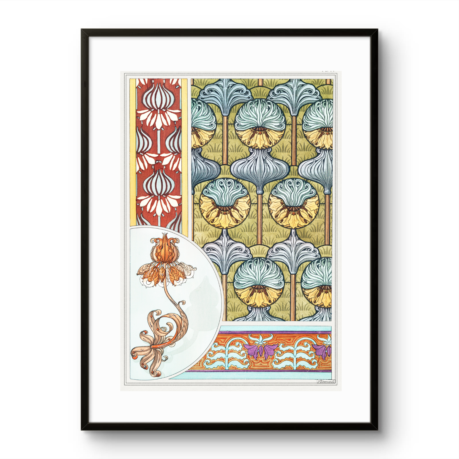 Maurice Pillard Verneuil (1869-1942) was a prominent French decorative artist and designer known for his contributions to the Art Nouveau movement. His work spanned various mediums, including ceramics, textiles, and posters. Verneuil's intricate patterns and natural motifs, inspired by flora and fauna, defined his distinctive style.